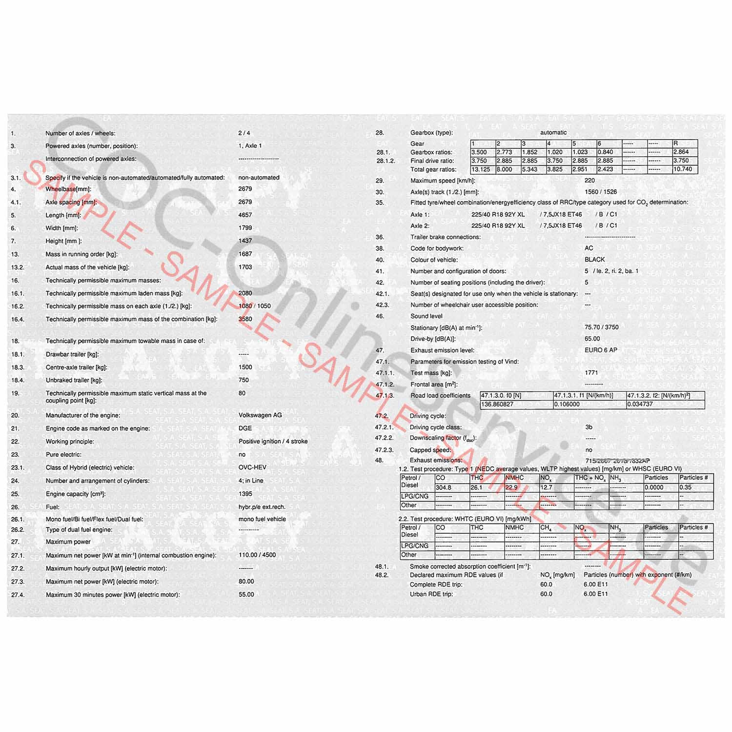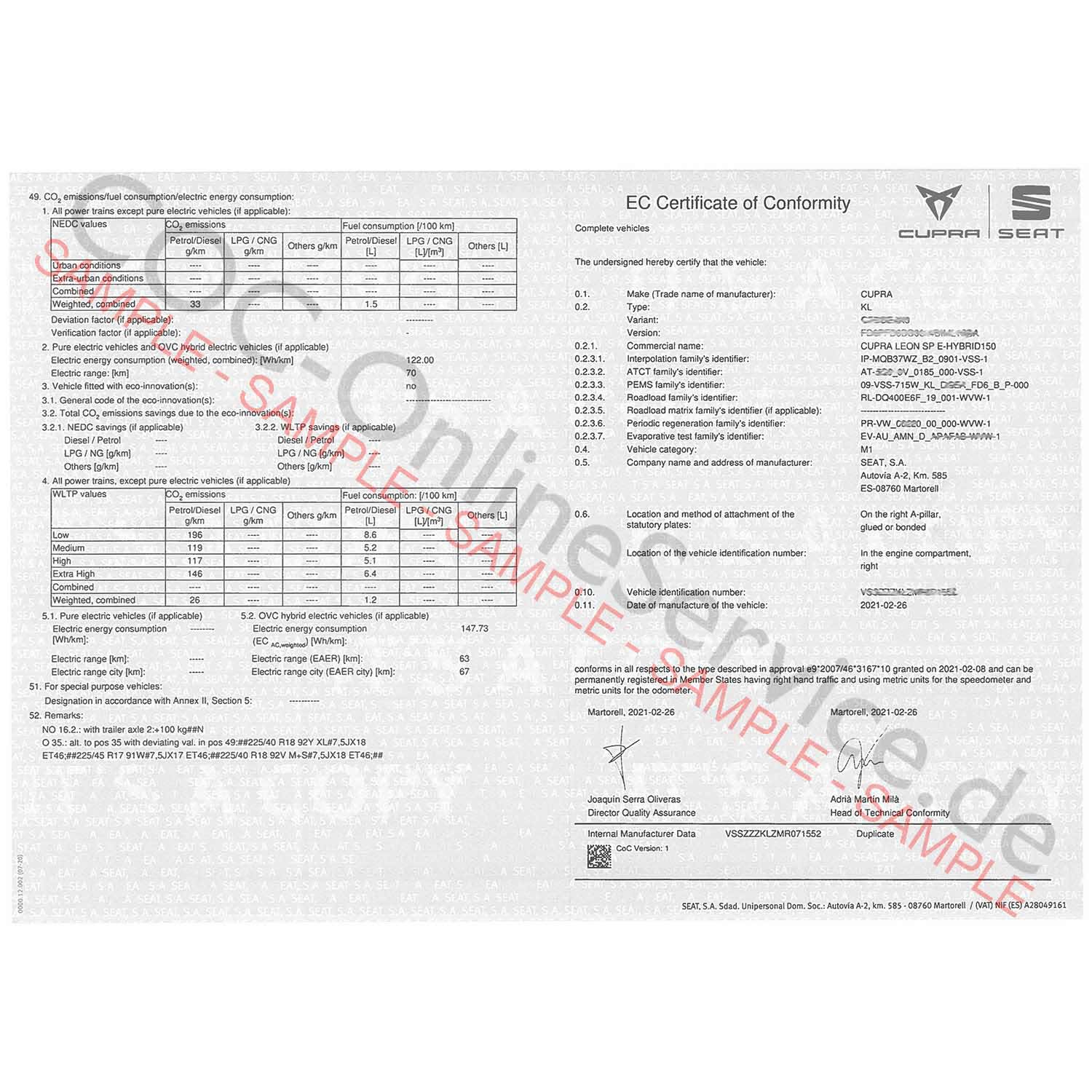 COC-asiakirjat Cupra:lle (Certificate of Conformity)