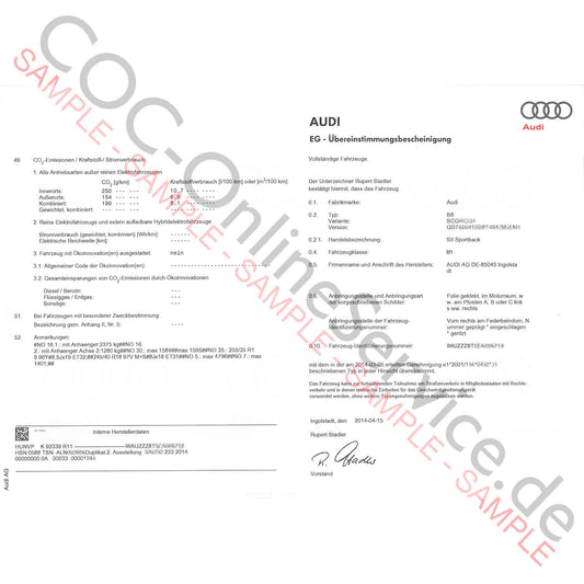 COC-asiakirjat Audiin (Certificate of Conformity)