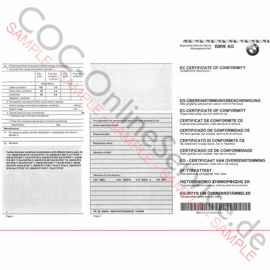 COC-asiakirjat BMW:lle (Certificate of Conformity)