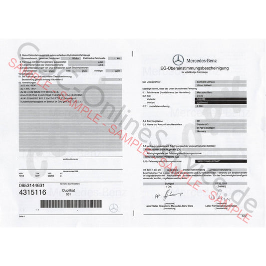 COC-asiakirjat Mercedes-Benzille (Certificate of Conformity)