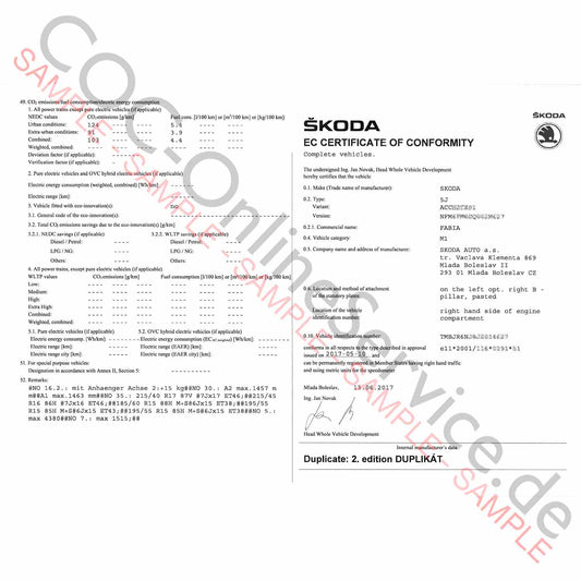 LoppuunmyytyCOC-asiakirjat Škodalle (Certificate of Conformity)